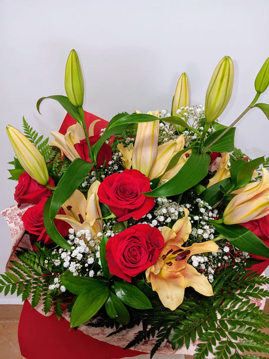 Ramo de Rosas con Lirios Cálidos de HolandaPrecio habitual A partir de €49,90 EURPrecio habitualPrecio unitario / por-